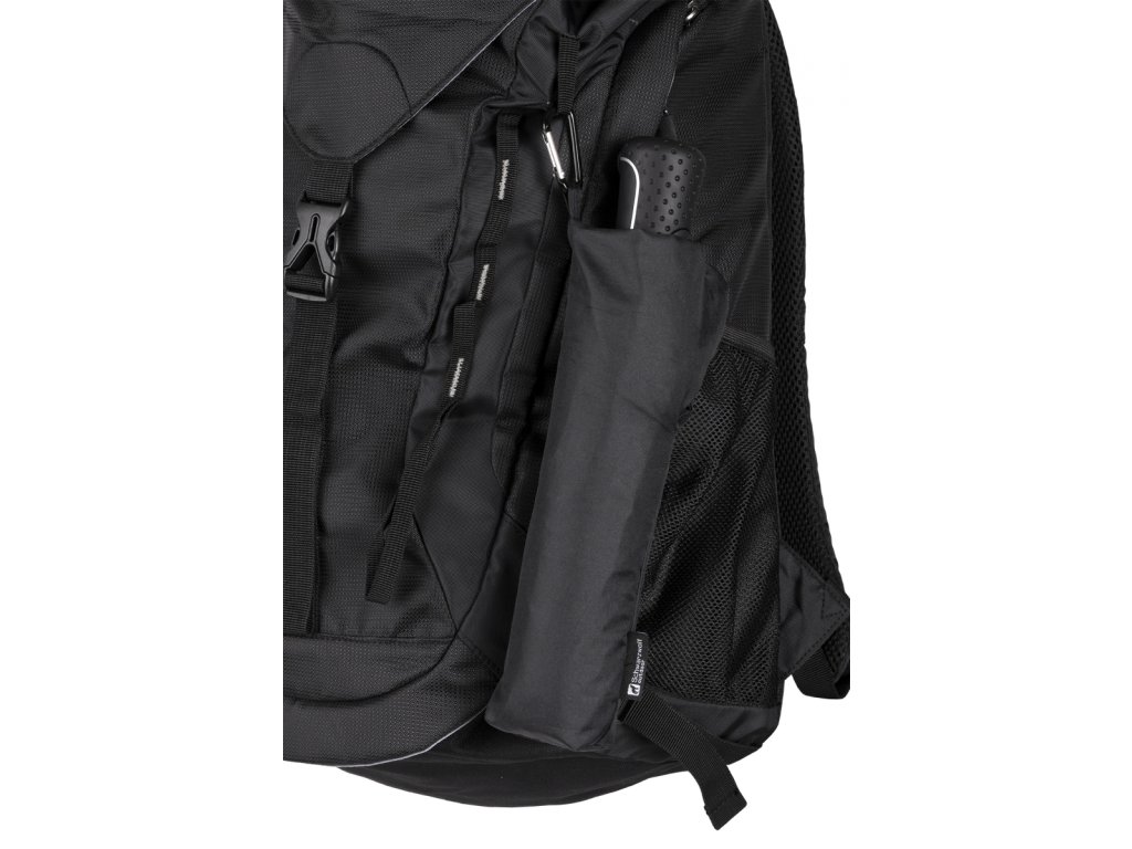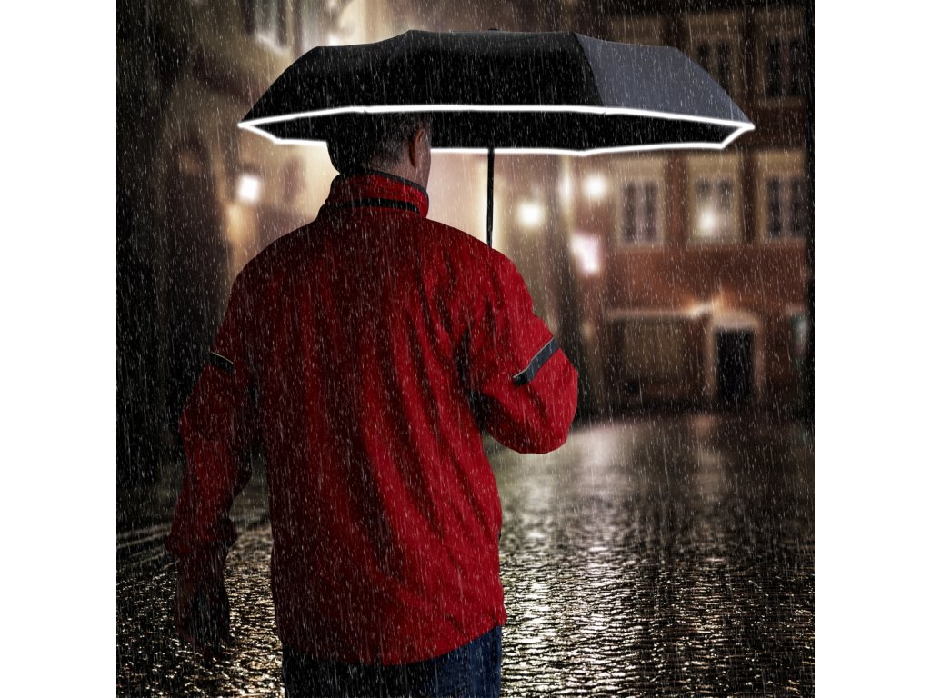 Vašu bezpečnosť zabezpečuje reflexné lemovanie. Puzdro dáždnika obsahuje praktickú karabínu pre uchytenie na batoh.